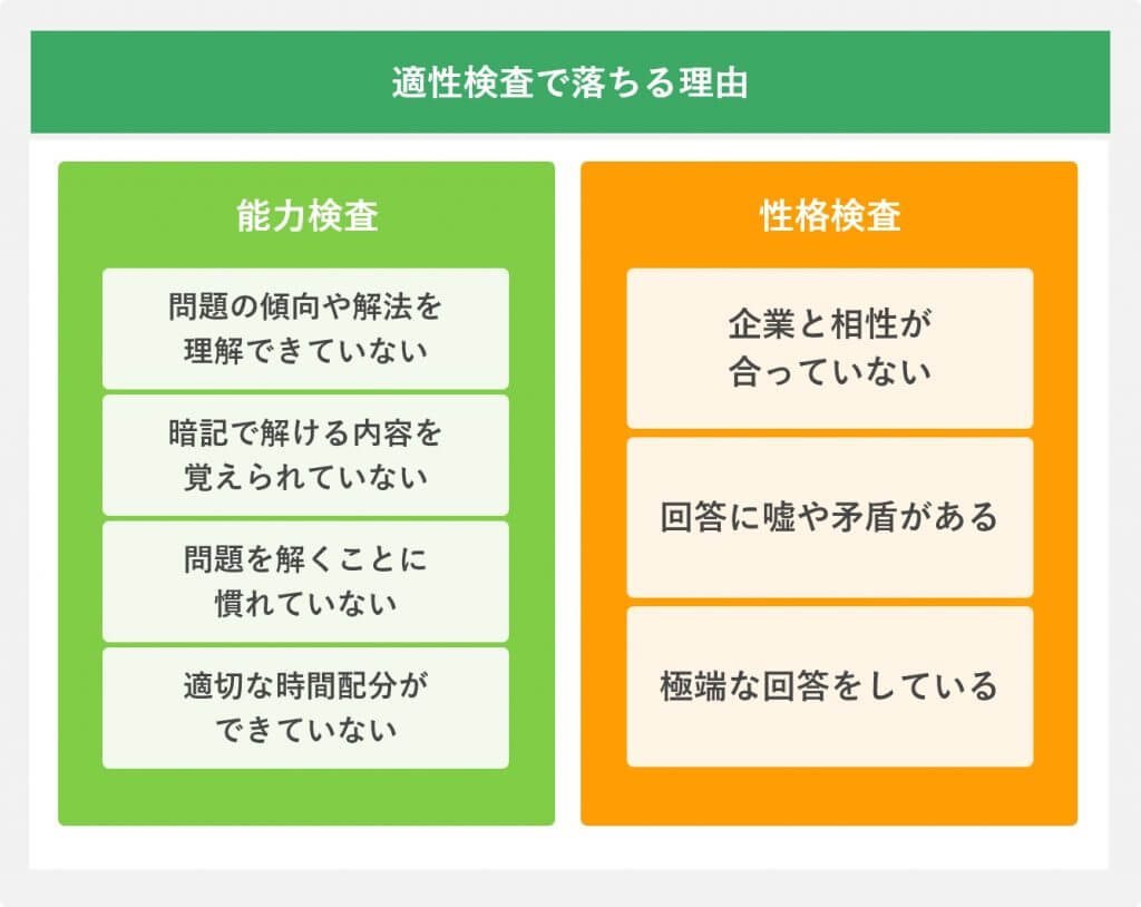 適性検査には、主に性格検査、能力検査、および適性テストの3種類があります。性格検査は、応募者の性格や行動傾向を評価し、能力検査は、応募者の知能や技能を測定します。また、適性テストは、応募者が特定の仕事に適しているかどうかを判断するために実施されます。