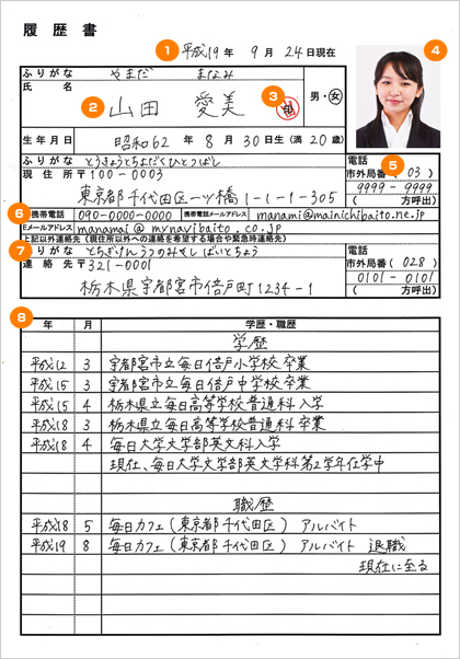バイト用履歴書の基本構成