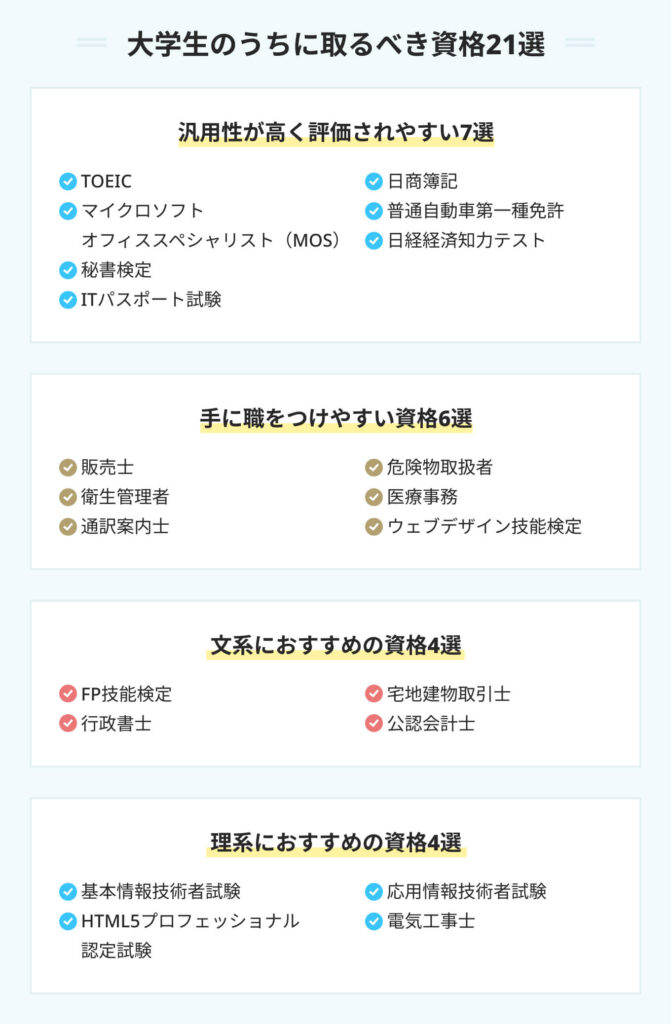 就職に有利な資格にはどのようなものがありますか?