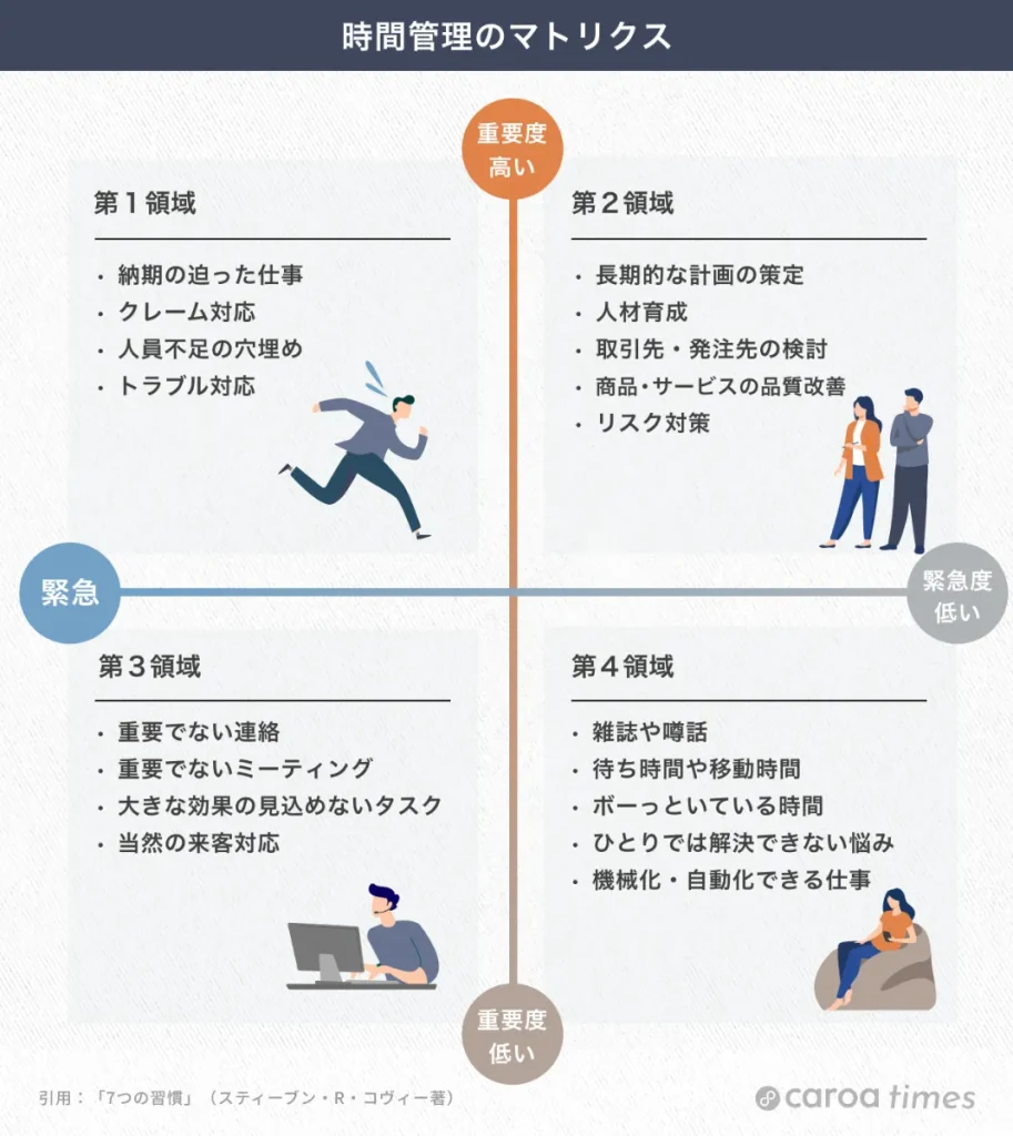 ビジネスの世界では、時間管理は非常に重要です。効率的な時間管理は、生産性を高め、業務の質を向上させるために不可欠です。特に、現代のビジネス環境では、急速な変化に対応し、短期間で成果を出すことが求められています。そのためには、タスクの優先順位付けや時間の有効活用が鍵となります。