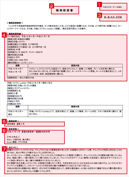 ホールスタッフの職務経歴書に必要な要素
